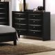 The Ireland I dresser with 8 spacious drawers is sure to provide style and functionality for any bedroom needs. All drawers have English dovetail with center metal glides. The dresser is complemented by slightly flared square legs and a modern black finish with shaped drawer fronts.