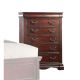 The Estrella (Beverly) Chest Is made of hardwood solids with six drawers to store bedding, clothing, and more. The narrow, felt-lined top drawer is perfect for delicate items. Crown molding and bronze metal hardware complete this dark cherry chest.