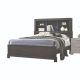 The Lantha bed boasts clean lines and features a rectangular bookcase headboard and low profile footboard in a unique mix of natural hardwood in a gray oak finish. Multiple open compartments on the headboard allow storage for anything from books to accent and display pieces.