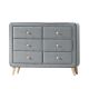 6 Drw Padded: Light Gray Fabric & Black Welt Trim Drawer: GLIDE Side Metal, NO DT, NO Felt-Lined, KD Wooden Tapered Leg: Natural Finish, 5" (130mm), Carton: 12" x 8" x 3" (300 x 200 x 70mm) Top Chest: Polyfoam 43" x 16" (1090 x 410 x 5mm) ASTM F2057 - 17 + ASTM F3096 - 14 NOT Compliant Q&A] Clearance between Floor & Base:...