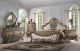 The Ragenardus bedroom collection is an impeccable example of truly memorable, with its luxurious traditional design. Your bedroom will be dignified fashion with the center piece. This arched panel bed has a beautiful designed headboard with intricate floral designs around the border. The footboard is perfectly match with button tufting and floral carvings details. The dresser, chest, and nightstand feature a matching detailed French style front. Every piece of the bedroom creates a vintage style from the hand carved designs to the button-tufted upholstery.