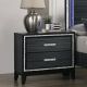 Classic design with touches of modern aspects makes this Haiden Nightstand ideal for any bedroom. The piece offers a rectangular tabletop and two storage drawers for displaying or organizing. It also features a glamorous shimmering silver accent trim that adds richness to design. The drawer handles with the same shimmering silver tie them all together to create a cohesive look. The black finish makes it easy to fit into already existing decor.