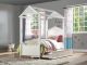Your children will adore the magical Rapunzel bed that evokes the spirit and appeal of a cottage house. This unique canopy bed sits inside a classic house frame, with an arched headboard, low profile footboard and canopy with raised molding trim and scrolled motifs, all in a classic white finish. Matching case pieces...