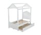 Your children will adore the magical Rapunzel bed that evokes the spirit and appeal of a cottage house. This unique canopy bed sits inside a classic house frame, with an arched headboard, low profile footboard and canopy with raised molding trim and scrolled motifs, all in a classic white finish. Matching case pieces...