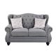 KD Back, Tight Back & Seat Cushion (1+2) 2 Pillows, Buttonless Tufted, Nailhead Trim (NO Storage) CONSTRUCTION: Pocket Coil Seat; Inside Frame: Wood (Pine+Ply), Foam () CUSHION: Box Cushion w/Welt () BACKREST: Wingback Style ARMREST: Rolled Style, Nail-head Trim (Front & Base) Wooden Bun-Turned LEG (Front) Material: Fabric...