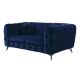 Elegant and eye-catching, the beautiful Atronia loveseat is the perfect addition to any space. Chic button tuft design with bright blue cover, strength, and beauty guaranteed with sturdy wood frame and chrome legs. This loveseat is bound to be the conversation piece.