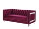 Looking to create a glamorous living room, look no further. The Heibero collection is ideal for that. Featuring timeless button tufting and the more modernized fine details such as the mirrored trim accents. The burgundy velvet upholstery is an eye-catcher. Have the best of both worlds contemporary and classic all in one with this collection. Solidly constructed, this sofa rests securely on four acrylic legs. This collection is a perfect solution for providing seating for you and all your guests.