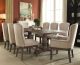 The Landon collection will help you create a sophisticated and distinctive dining area in your home. Made of solid hardwoods with distressed veneer, combines a bold table top finish with a trestle table stand. The Wingback chairs features gently curved back in a linen fabric upholstery with nail head trim. Perfect for a dining time with friends and family, this dining group will complement your home decor.