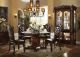 The Vendome traditional dining collection features a pedestal dining table complemented with oversized upholstered chairs all accented by floral carving decorative base and feet. Matching curio reflects all carefully selected design features as the dining collection.