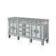 Server Storage: 6 Drawers, 2 Doors (Inside 2 Compartments w/1 Wooden Shelf) Wooden Top & Frame, Raised Geometric Trim, Beveled-Mirror Inlay (Door/Drw/Case), Tapered Leg CONSTRUCTION] Wooden Frame: Beveled Mirror, Wood (Poplar+Rbw), MDF Mirrored Tapered Leg Drawer: GLIDE Side Metal, HARDWARE: Single Crystal-like Pull-Knob...