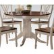 The Dylan collection features round table top with empire pedestal base, carefully crafted with selected wood and veneers in buttermilk and oak finish. Matching side chairs offer overlapped "X" backrest design, wooden seat top, and turned front legs providing a warm and cozy country style for your dining room. (Table and...