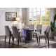 The Belay dining set combines the sharp modern look of tempered glass with the warmth of a gray oak finished base. A traditional height dining table that comfortably seats six, the rectangular table adds upscale glamour bringing a chic, industrial feel to your dining area, featuring a sturdy base with LED lighted inlay. Adding the upholstered side chairs to create an inviting and enjoyable dining atmosphere.