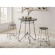 The Nimai 3pc counter height dining set is an excellent choice for small spaces or anywhere you want to add an industrial look. This counter height set includes two sturdy stools with wooden seats and metal X shape base. The table features a round top, and it's gray oak, and sandy gray finish lends the set a healthy dose of modern style.