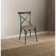 Decorate a garden room or a sunroom with a lightweight and elegant Zaire side chair that functions as a unique piece or as one in a set. The chair features wooden seat in walnut finish, "X" back and legs in antique turquoise steel with hand made antique finish.