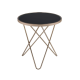 Update your living room with a functional art piece. The Valora end table uses a mid-century inspired base finished in champagne and supports a framed black glass top. The finish and black glass make for a sophisticated look.