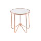 This Alivia modern occasional table brings a unique yet classy look to your living room. With effortless infusion of frosted glass and unique retro inspired rose gold metal base, this piece will naturally blend in your living room, making it a statement of any room decor.