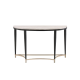 KD, Half-Moon Sofa Table • NO Storage • Wooden Top, Metal Tapered Leg •• CONSTRUCTION] Wooden Top: Veneer (Paper)+ PB • Metal Apron Trim • Metal Sled Base: Black Finish, Metal Tube (Arched 4-Crossbars Supports: Gold Finish)