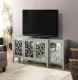 The Kacia console table will be a stylish addition to any living space. Features four mirrored front doors beautifully embellished by raised ornamental inlay, each door includes one shelf inside. This versatile piece may be used as a TV stand, display table, or storage cabinet for any room essentials.