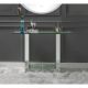 KD, Rectangular Console Table Storage: Open Compartment (Base Shelf) Features: Glass Top, Mirrored Sled Base w/Faux Crystals & Clear Glass CONSTRUCTION Glass Top Mirrored Sled Base: 4mm Beveled Mirror, MDF, Faux Crystals, 4mm Clear Tempered Glass