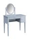Dreamy, elegant, and classy, the Rabila Vanity Set will satisfy all your needs. Vanity mirror, table and stool are all included to create a dedicated space you deserve. The oval mirror sitting atop the table provides multiple angle reflection, while a storage drawer and single door cabinet under the tabletop offer ample space for your makeup and jewelry storage. A lovely stool with soft fabric gives you comfortable support. Muted gray finish complements this woodcraft vanity set perfectly, making it blend into any room style.