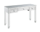 The Noralie Console Table will give any room a touch of glamour. Mirror and glass materials give it a modern and clear touch while faux diamond inlays under the table top add glam style to this piece . Use this unique piece as the perfect accent for any room décor. Three drawers with self closure and safety stop provide ample and convenient storage for small electronics, cosmetics, accent items, jewelry, and more.