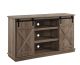 Highlight your living room with a down-to-earth aesthetic ! The TV Stand features a rusic casegood and two sliding barn doors with X brace design. The sturdy metal track is paired with smooth sliding rollers, making you could easily move the barn doors to cover any storage spaces. There are four storage rooms and three media compartments with back holes for cable managements that is perfect for your audio visual equipment.