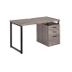Make your office more organized with this Coy desk. Not only does it have 2 drawers and a bottom file drawer, but an "on hand" opening under the top for the quick access files. Plenty of top surface at 47" x 22" for any set up and a nice combination of gray oak and black metal end leg support.