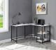 KD• L Shape Writing Desk• 2 Tier Shelf Under Table Top• Includes USB Charging Port• Open Metal Frame