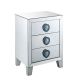 Assambled, Rectangular Night Table • Mirrored Finish: Beveled (Back Unfinished) • Orientation: Free Standing • Storage: 3 Drawers (Open Base) •• CONSTRUCTION •• Mirrored Case-Frame & Drw: Mirror, MDF (Fixed Top) • Mirrored Tapered Leg, Leg Size: 4 Inches Height •• Drawer: GLIDE Side Metal (Ext. 2/3),...