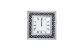 The Marku floating crystal wall clock, is sure to be focal point of any room. This stylish wall clock features a square mirror frame inlaid black floating crystals on a black background around the face. The clock face has a clean, modern look featuring roman numerals.