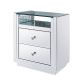The Nysa End Table will give any room a touch of glamour. This contemporary nightstand is fully mirrored with a beveled edge and stunning glass top with a storage shelf surrounded by faux crystal inlay. Use this unique piece as the perfect accent for any room Decor. Two large drawers provide ample and convenient storage for books, remote controls, jewelry, and more.