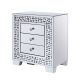 The Kachina End Table will give any room a touch of glamour. This contemporary nightstand is fully mirrored with a beveled edge and a stunning mirror top and is trimmed with a faux gem inlay. Use this unique piece as the perfect accent for any room Decor. Three drawers provide ample and convenient storage for books, remote controls, jewelry, and more.