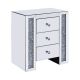The Noralie End Table will give any room a touch of glamour. This contemporary nightstand is fully mirrored with a stunning mirror top and a faux gem inlay on each leg of its sled base. Use this unique piece as the perfect accent for any room Decor. Three large drawers provide ample and convenient storage for makeup brushes, jewelry, and more.