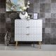 With its clean contemporary lines, this 3 drawer dresser will enhance the decor of any bedroom. The dresser gives a distinctively light and airy allure while the attractive metal shaped legs and angled metal handles accentuate the modern design. The angle of the handles make opening and closing the drawers a breeze.