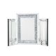 Display your dazzling sense of style by topping your vanity with the Noralie tri-fold mirror. This trifold mirror features a beveled mirrored frame with faux diamonds inlay. Each piece is hinged, allowing you to adjust the position of the side panels.