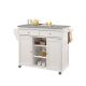 Add storage space and charm to your kitchen with this Tullarick wheeled kitchen island. The stylish white finish and stainless steel top along with silver handles and pulls make this cart an adorable addition to cottage, contemporary or beach decor schemes. This modern kitchen island cart features ample storage for all your cooking needs with shelves, drawers, a condiment rack and towel rack. Some Assembly Required.