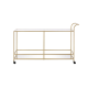 Designed to add luxurious and sophisticated touch to your dining area, this Kenda serving cart is a great option for keeping your favorite bottles in easy reach. The top shelf is crafted with 5mm tempered clear glass and the bottom shelf is mirrored. The simple straight lines design proves exceptional display capacity. With the frame finished in gold coating, it will round out your home with a glamorous touch.