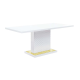 The sleek clean-lined table Gaines dining table offers subtle a hint of glam, the base offers a touch of gold to enhance the textured vertical lined pedestal. The white high gloss finish reflects light and makes any dining space appear larger and grander. Ample enough to showcase an impressive spread for all your guests to enjoy.