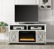 Brighten up your living space with the Noralie TV stand with a fireplace. In an alluring mirrored and faux diamond finish to showcase your glamourous side. The media shelf has cable management cutouts to keep cables out of sight to preserve the beautiful look of the piece. The touch panel LED fireplace features adjustable temperature control and a timer function.