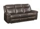 Cuddle up in this decadently plush Lydia sofa set. The set is upholstered in a warm and earthy brown leather-aire. Distinctive elements include wraparound padded armrests, along with a few hidden surprises. The richly styled reclining sofa features a drop-down tabletop with cupholders and AC power and USB ports to accommodate the modern home. The loveseat includes a center console that also features cupholders and AC power and USB ports. The recliner features a gliding mechanism for added comfort.