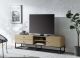 We know you're looking for a TV stand that's got all the bells and whistles, so we've taken care of the details. This Isha black metal base TV stand has two open storage compartments, and it's finished in an oak wooden grain. The hinged door opens to reveal a storage compartment. It also features two drawers. It has cable...
