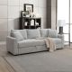 The Haran collection sofa in beige boucle fabric is a blend of elegance and functionality. Featuring a wooden inner frame, it effortlessly transforms into a full-size pull-out sleeper.The removable cushion and back cover, along with included accent pillows, add to its comfort and style, making it a perfect addition to any living space.