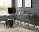 Corner Computer Desk Orientation: "L" Shape Metal Base: Curved X-ShapeSpace SavingRectangular Table Top w/Tempered GlassKey Board Tray IncludedComputer Holder Included