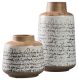Two’s company with this 2-piece vase set. Its black line design is artistically looped with an organic sensibility. The contrast of the vase’s tan neck against the cream body speaks to your affinity for primitive decor.