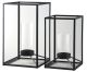 This minimalistic 2-piece lantern set lights up your home in a sleek way. Black finished metal is beautifully crafted in a linear manner. Perfect for indoor or outdoor use. Place the candle of your choosing in the clear glass to make these lanterns your own.
