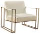 Less is so much more with this ultra-cool accent chair. A mastery in open-concept living, this chair with sturdy metal base is enriched with thickly padded box cushions wrapped in a cream leather with ostrich patterned embossing. Leather armrests are a strapping touch.