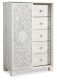 A one-of-a-kind girl deserves a bedroom retreat that celebrates her personal flair—and this boho-chic chest of drawers is so befitting. Wowing with an artful, carved-effect sliding door and richly distressed whitewash finish, this five-drawer chest with additional shelved storage is packed with possibilities.