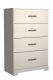 With its clean-lined look and modern attitude, this chest of drawers is a fresh style awakening. A crisp, white hue over subtle replicated wood grain easily complements other furniture finishes. Smooth drawer fronts with antiqued pewter-tone handles complete the aesthetic.
