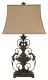 Twists and turns of metal and poly, adorned with a lovely timeworn crackle finish, bring a romantic and rather exotic feel to this striking table lamp. Its bell-shaped rectangular shade beautifully goes with the flow.