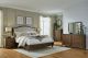 Traditional design. Made with hardwood solids, veneers, and MDF substrates. Features a complex rich brown finish that contrasts perfectly with the oil rubbed bronze tone hardware. Case designs feature thick profiled tops with inset drawers, turned feet, and a simple traditional bead moulding on each drawer front. Drawers feature dovetail drawer construction, fully finished interiors and heavy duty ball-bearing side glides. Upholstered bed features a unique shelter wing design and integrated upholstered footboard bench with nail-head trim. Nightstand includes a 110V power supply with USB-A and USB-C charging ports.